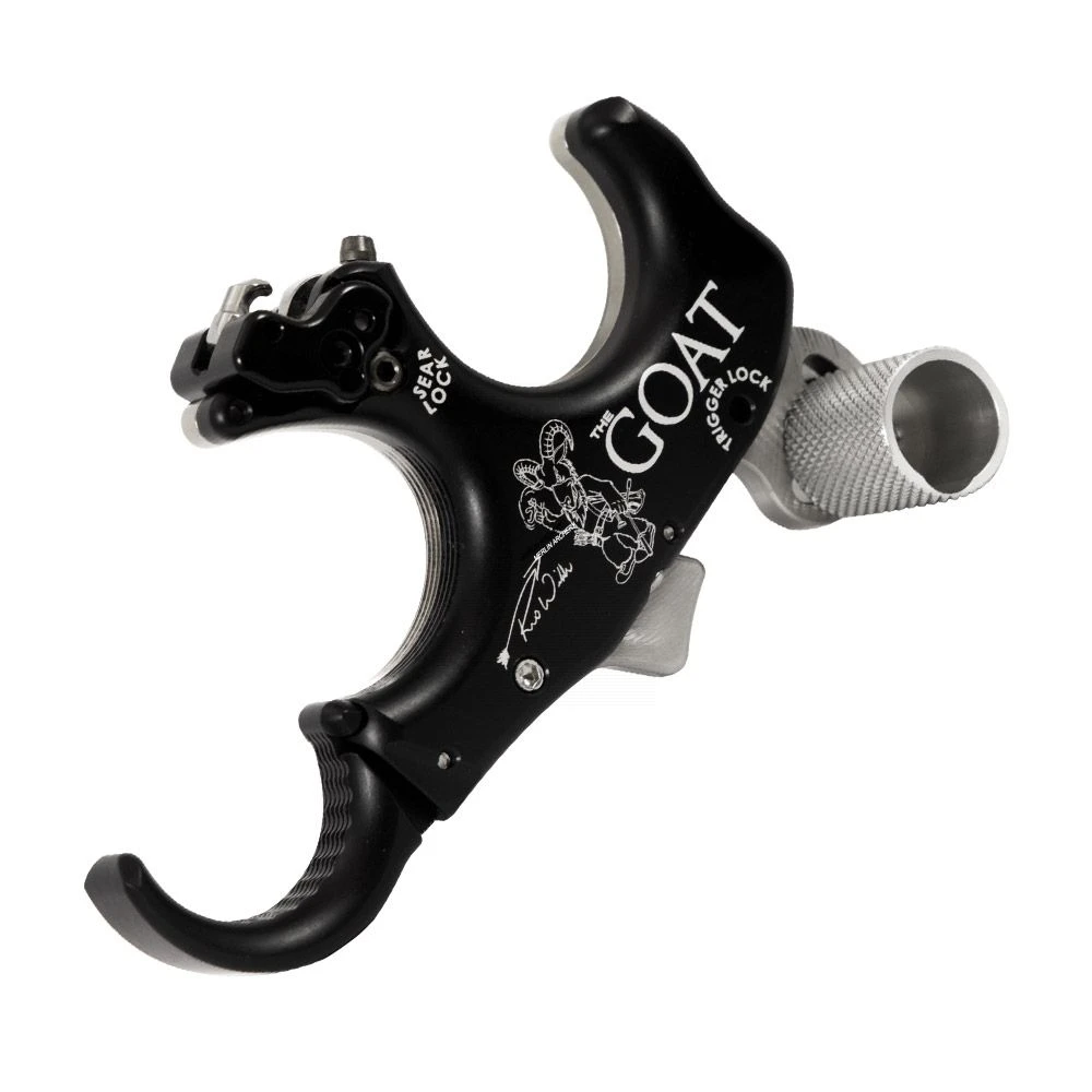 The Goat in the package is set as a thumb activated release, with individual trigger travel and trigger sensitivity screws with locks. Remove a single dowel (step 1), turn sear lock screw clockwise until tight (step 2) and turn trigger lock screw clockwise until tight (step 3) to make the Goat a hinge style release, it is that simple!